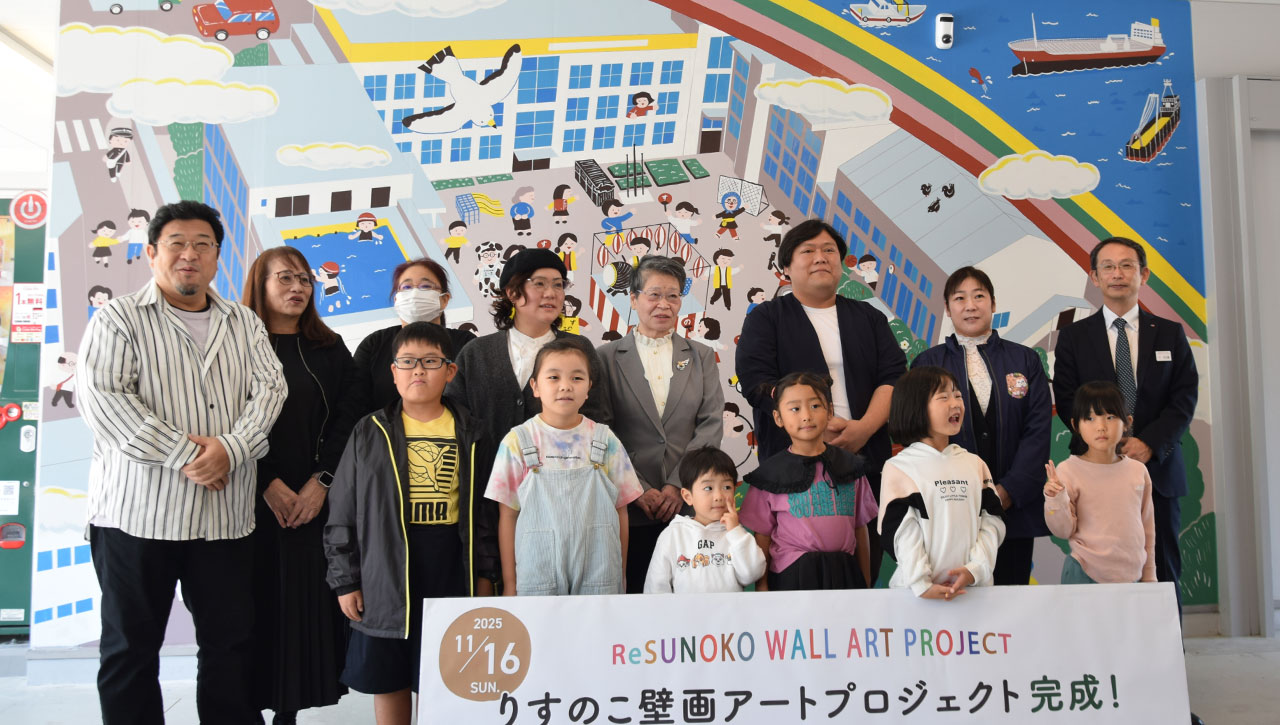 医療・介護・予防医療を軸にウェルビーイング・フロンティアを目指す桜十字グループが、JR九州グループと共同開発したりすのこスクエアにて、7月より進めてきた「りすのこ壁画アートプロジェクト」がいよいよ完成を迎え、11月16日(日)に簀子地区住民らを招いて完成お披露目会を開催しました。
