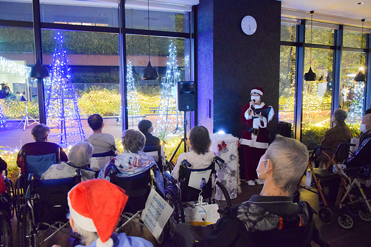 参加された患者さま・入居者さまからは「とても綺麗ね!毎日見に来たいわ」「イルミネーションと一緒に写真を撮ってほしい」といった喜びの声など、笑顔溢れるひとときとなりました。